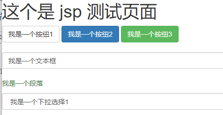 为了比较 bootstrap 的样式,先添加按纽、文本框、段落等,如下图所示: